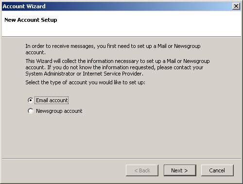- A new window labeled "Account Wizard" will appear. Make sure the