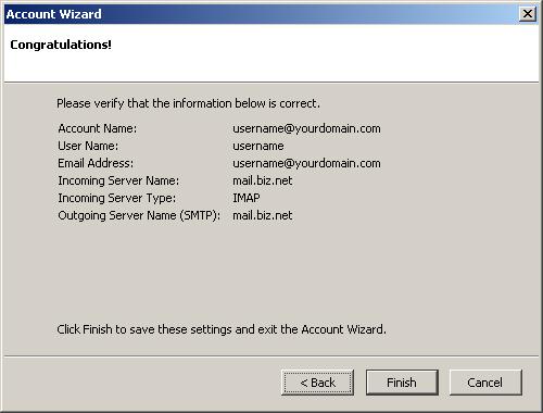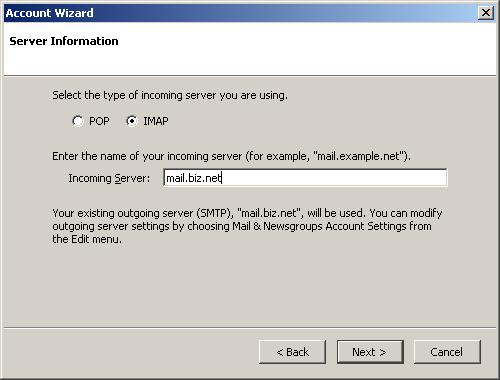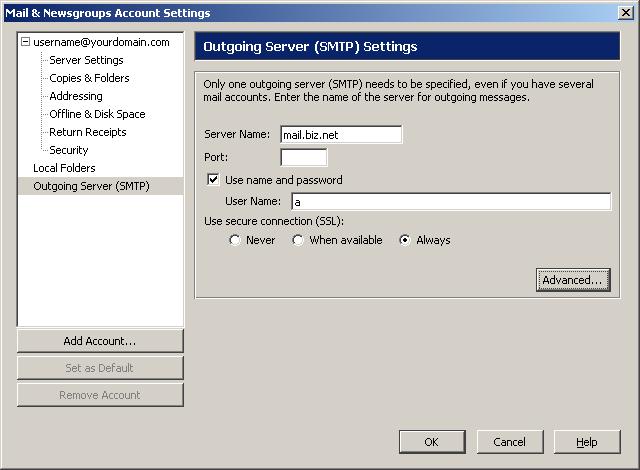 outgoing server (SMTP). In this case, enter "mail.biz.net" there.